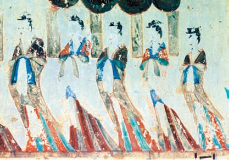 北方的贵族十分仰慕南朝贵族豪华享乐、自在休闲的生活。与皇帝百官朝服相比,贵族妇女的飞襳垂髾式襦裙更加突显了北朝崇尚享乐与自在的时代气质和品位。